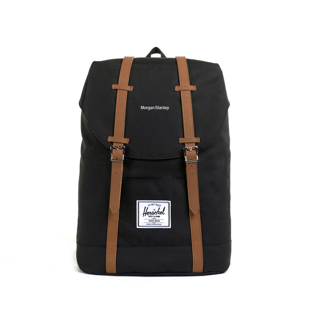The Herschel Retreat backpack is a streamlined rendition of a timeless mountaineering style, featuring a drawcord cinch closure and a strap detailed top flap. This backpack features a padded, fleece lined 15” laptop sleeve, magnetic strap closures with metal pin clips, and signature striped fabric liner. The Retreat makes a great everyday backpack with the internal media pocket with headphone port, contoured shoulder straps, and external storage sleeve. Features your logo.